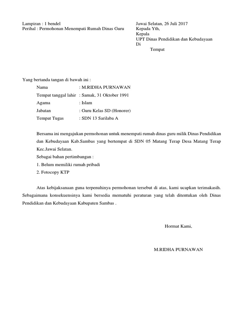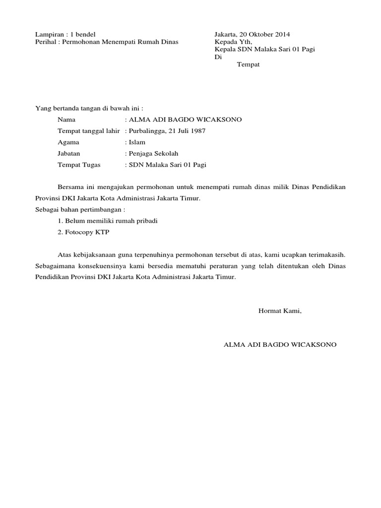 Surat Permohonan Menempati Rumah Dinas Pdf